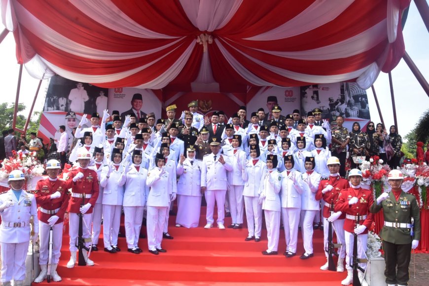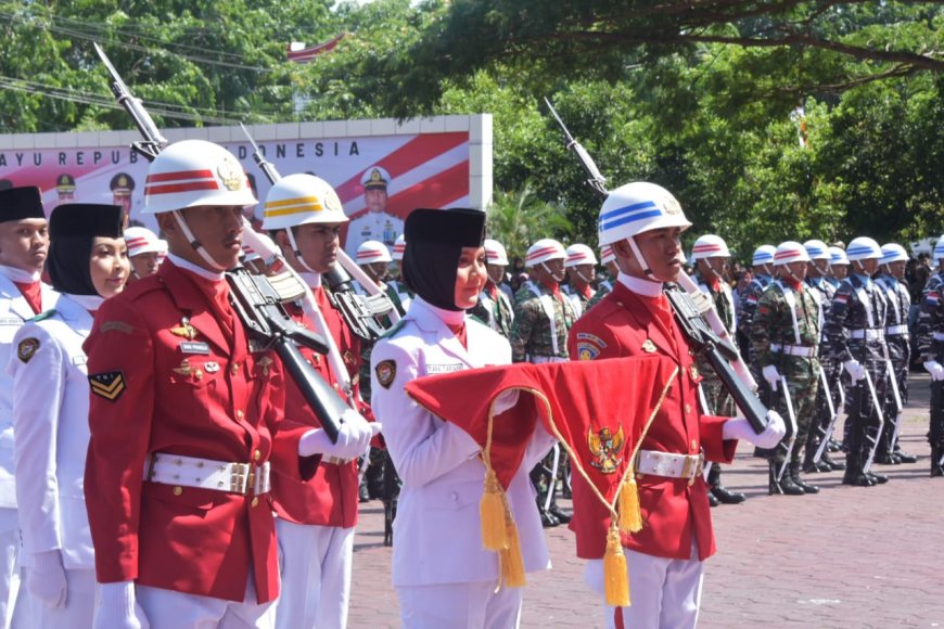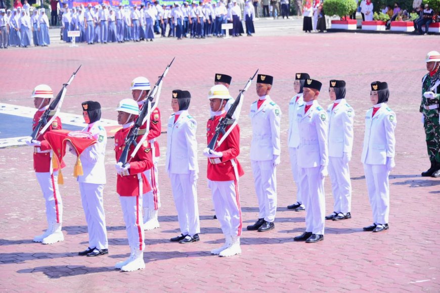 Pengibaran Bendera Merah Putih oleh Paskibra pada Upacara HUT RI Di Bengkalis